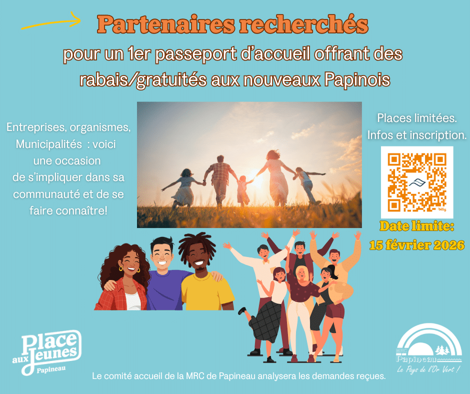 La MRC est à la recherche de partenaires désirant offrir un rabais ou une gratuité à travers le passeport. Il s'agit ainsi d'une visibilité pour les partenaires et d'une vitrine unique auprès de nouveaux arrivants.
